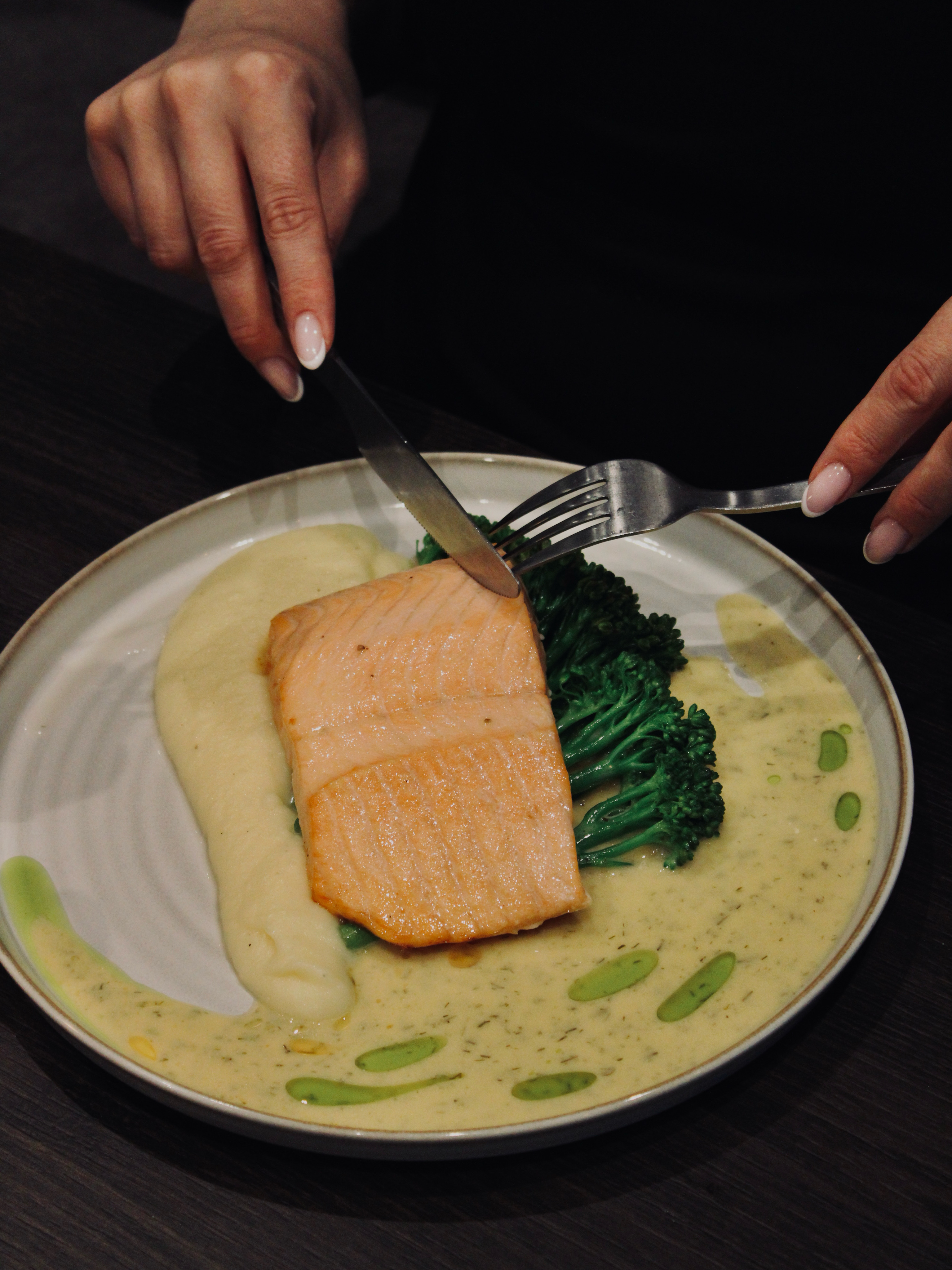 Fresh salmon is one of the true treasures of Northern Norway. At Bread & Wine in Tromsø, we prepare salmon in a way that lets the natural quality of the fish shine. Our salmon dish is served with a velvety beurre blanc sauce, made the old-fashioned way with patience and care.What makes salmon here special is not only the preparation but also the sourcing. We work with trusted suppliers from the cold, clean waters of the north to ensure freshness in every bite.If you’re wondering where to eat salmon in Tromsø, we invite you to our restaurant in the city center — a cozy spot where traditional flavors meet modern craftsmanship.